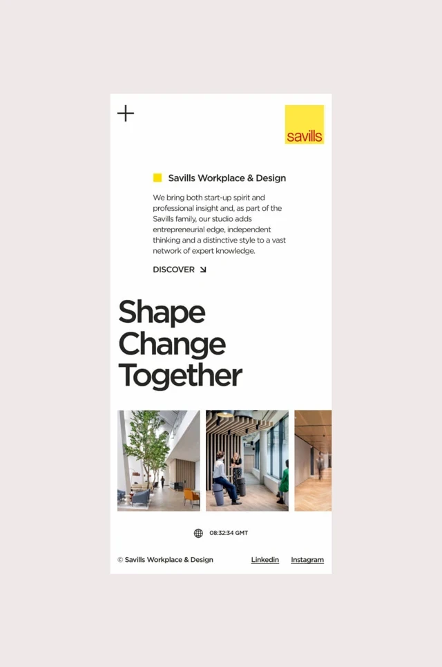 Savills Workplace & Design needed a digital presence that could sit among the industry's best, not just in appearance, but in experience. The goal was to build a platform that communicates the studio's values and personality while signaling a genuinely different way of thinking. Leading the end-to-end redesign, I collaborated closely with senior stakeholders to align on vision and direction, working alongside a web designer and backend developer to take the project from concept through launch.